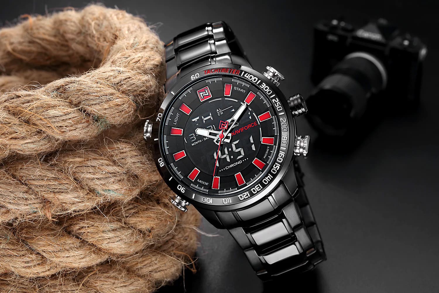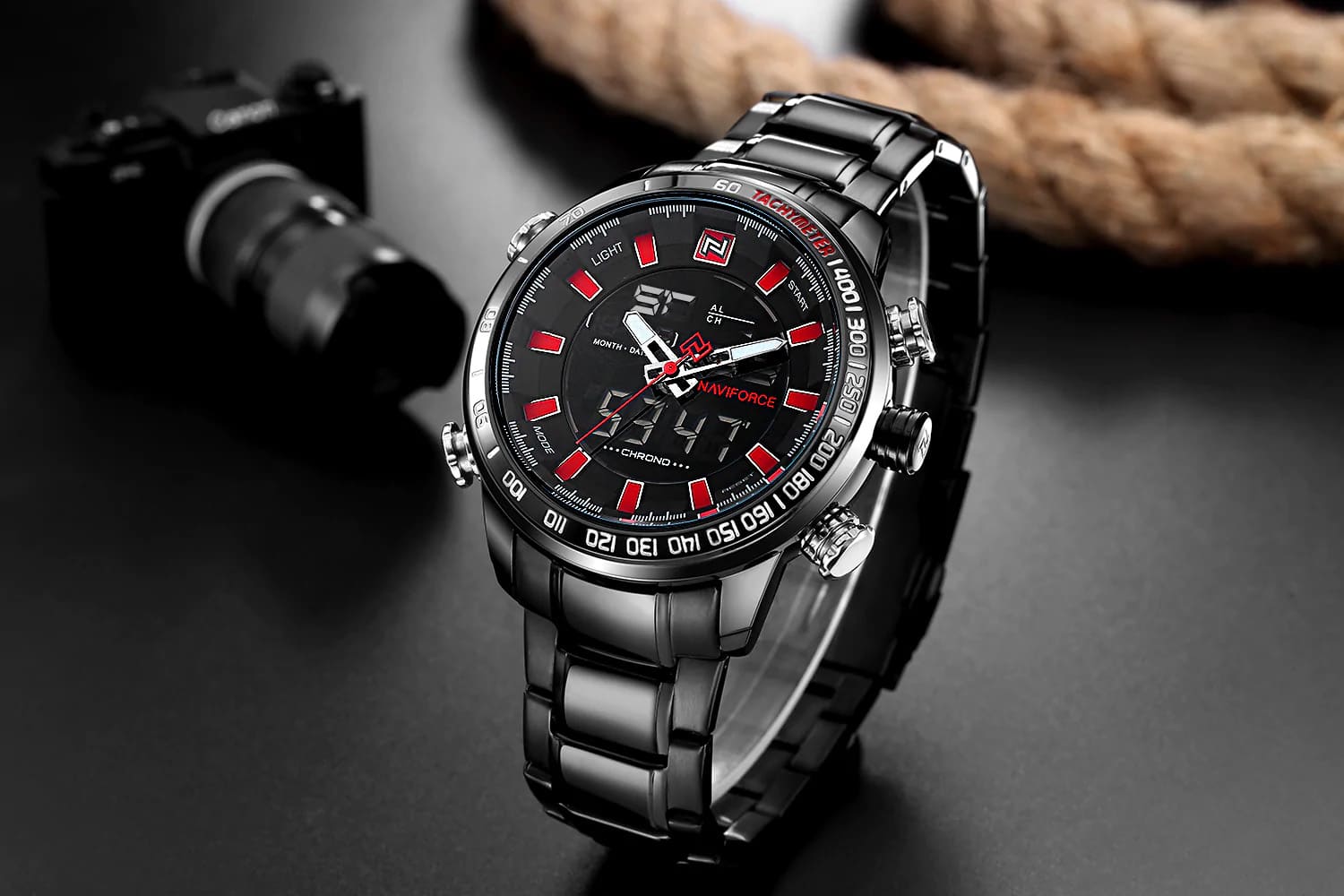 ساعة يد نافي فورس Naviforce NF9093 B B R رجالي أصلية موديل ( NF9093 ) نظرية و رقمية بلون مينا اسود و استيك معدن بلون اسود احصل عليها غدا خلال 24 ساعة داخل القاهرة و الجيزة و الاسكندرية