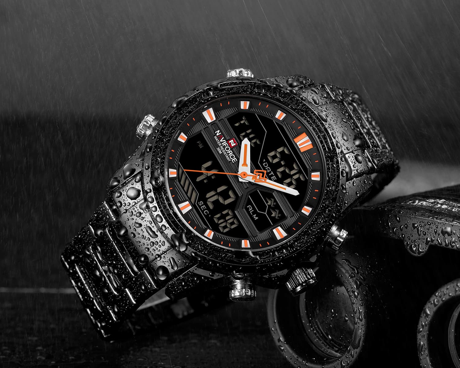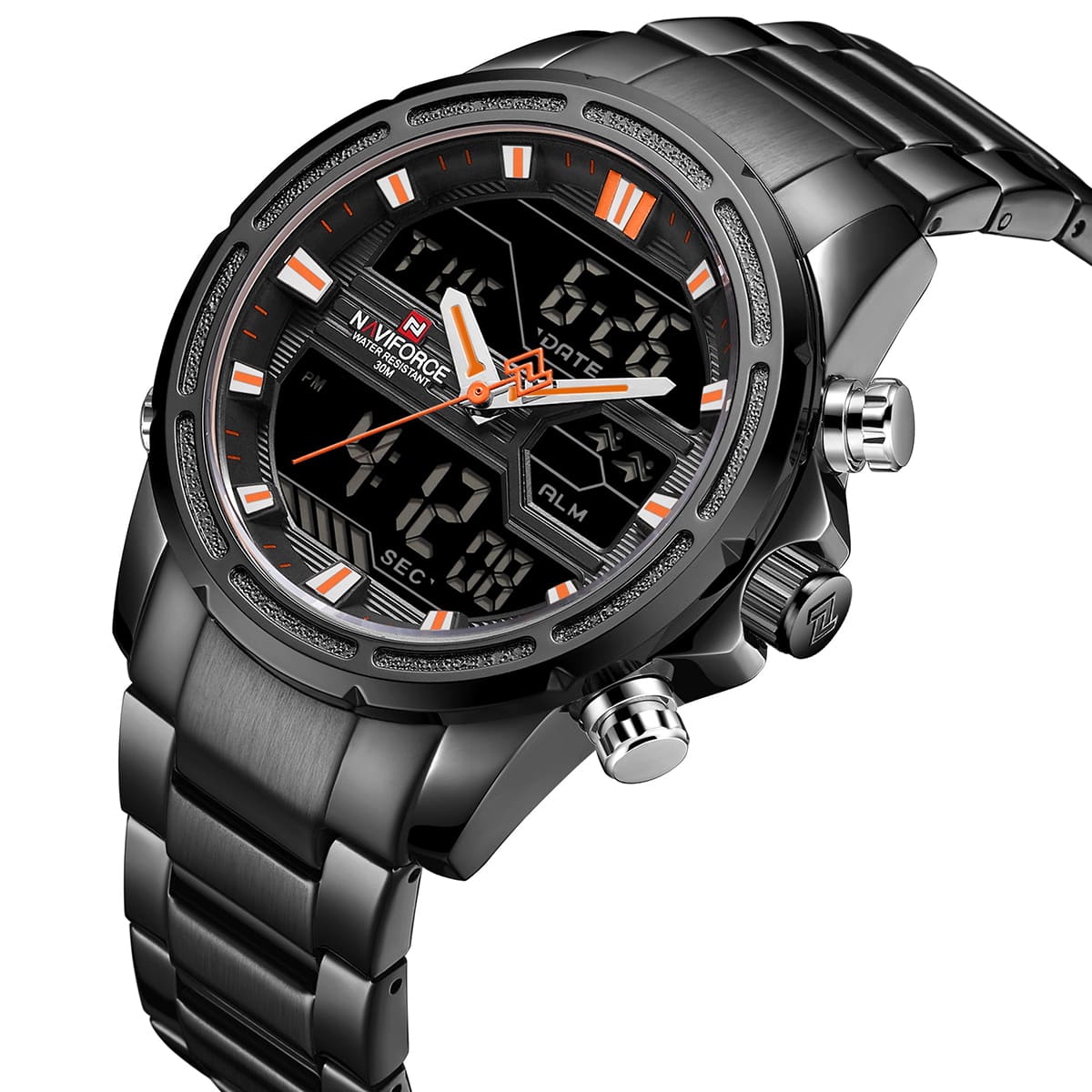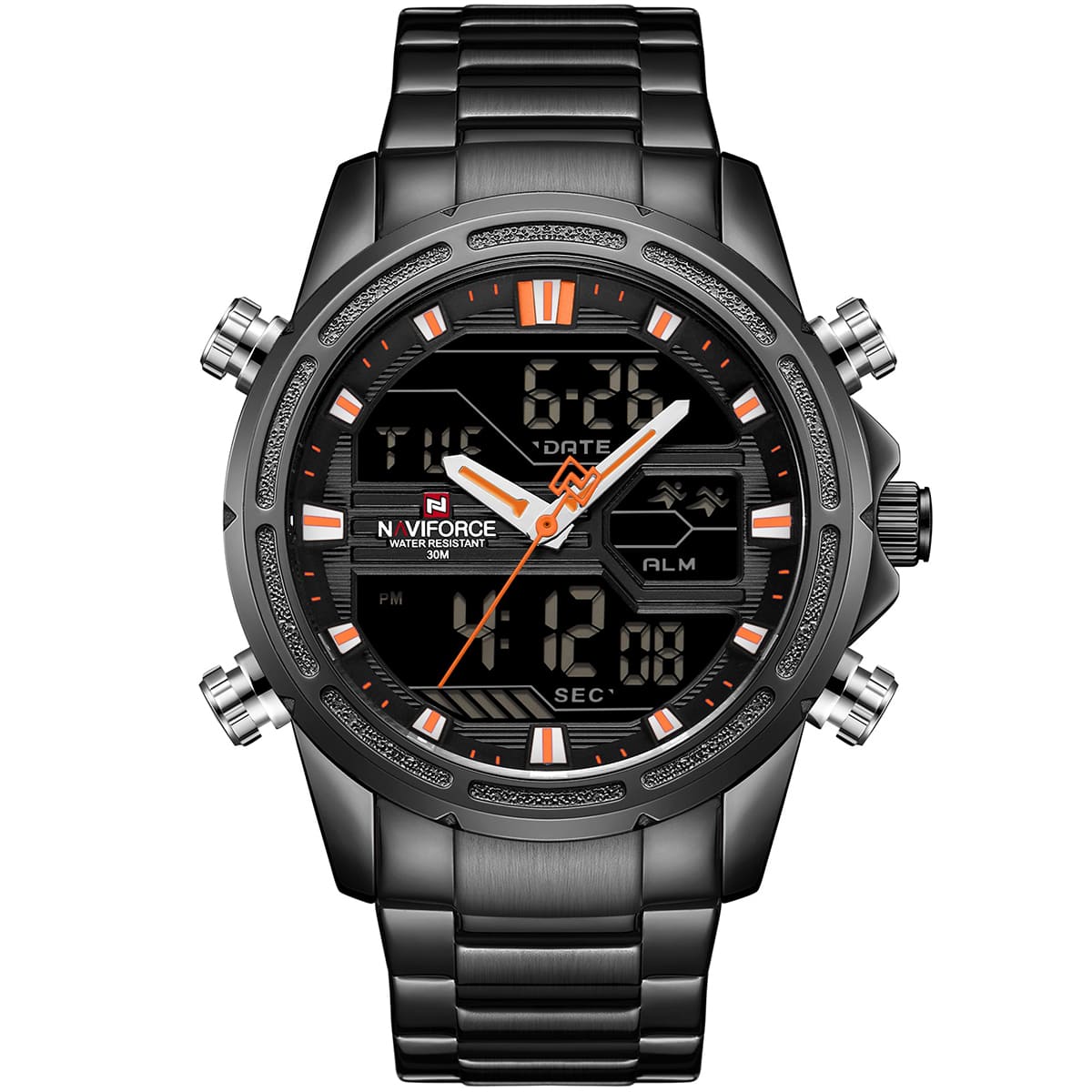 ساعة يد نافي فورس Naviforce NF9138S B B O رجالي أصلية موديل ( NF9138S ) نظرية و رقمية بلون مينا اسود و استيك معدن بلون اسود احصل عليها غدا خلال 24 ساعة داخل القاهرة و الجيزة و الاسكندرية