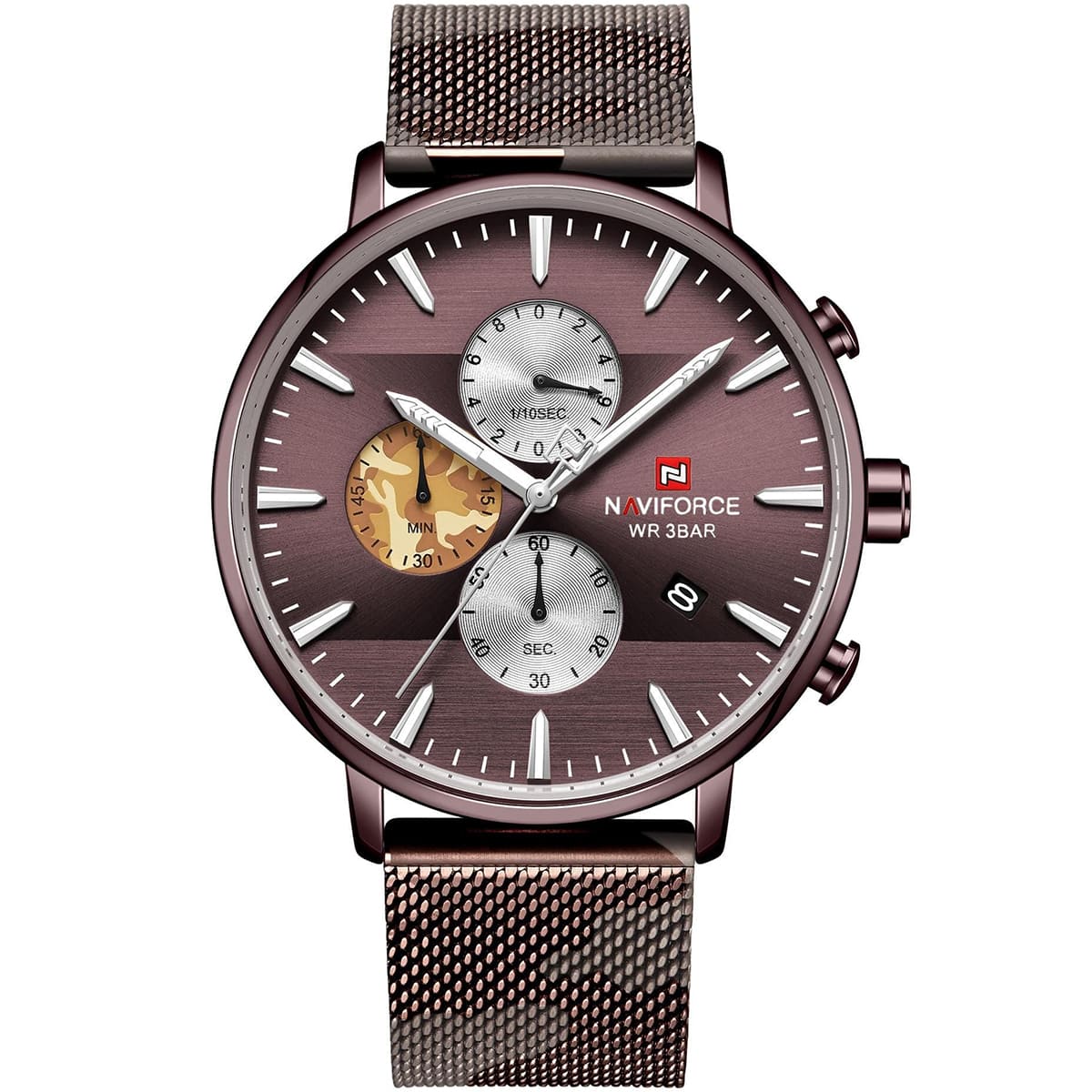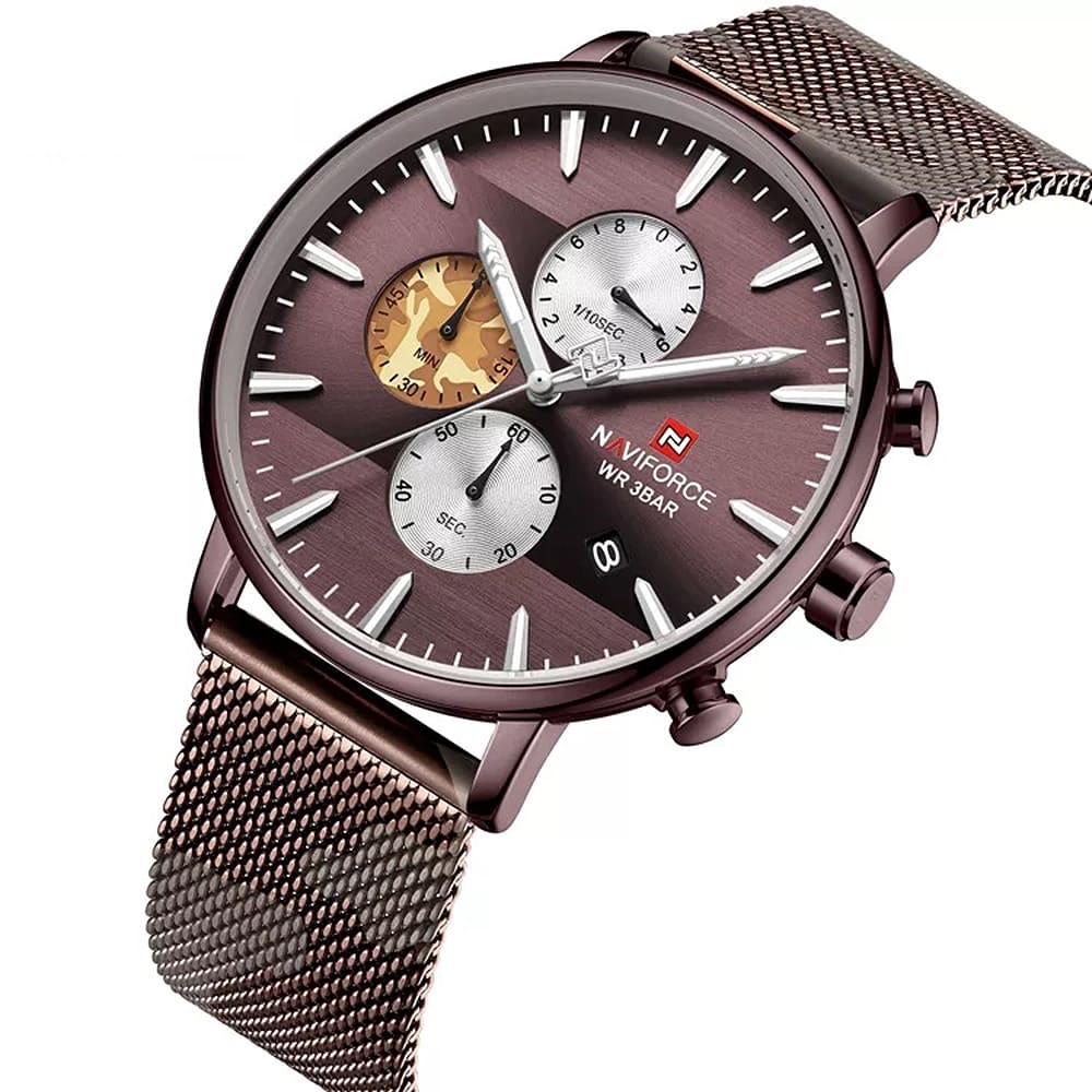 ساعة يد نافي فورس Naviforce NF9169 CF CE رجالي أصلية موديل ( NF9169 ) نظرية بلون مينا بني غامق و استيك معدن بلون بني غامق احصل عليها غدا خلال 24 ساعة داخل القاهرة و الجيزة و الاسكندرية
