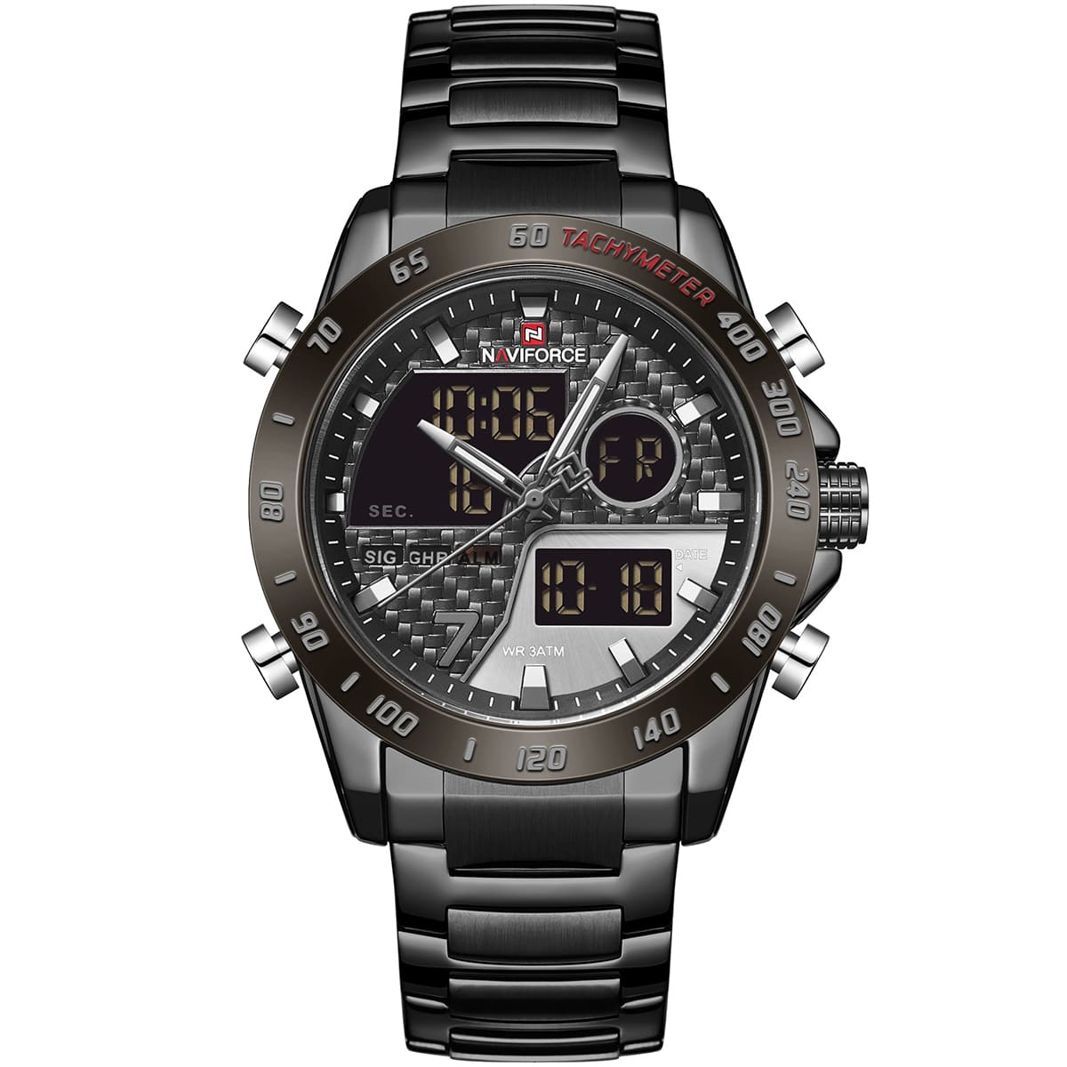 ساعة يد نافي فورس Naviforce NF9171 B GY B رجالي أصلية موديل ( NF9171 ) نظرية و رقمية بلون مينا رمادي و استيك معدن بلون اسود احصل عليها غدا خلال 24 ساعة داخل القاهرة و الجيزة و الاسكندرية