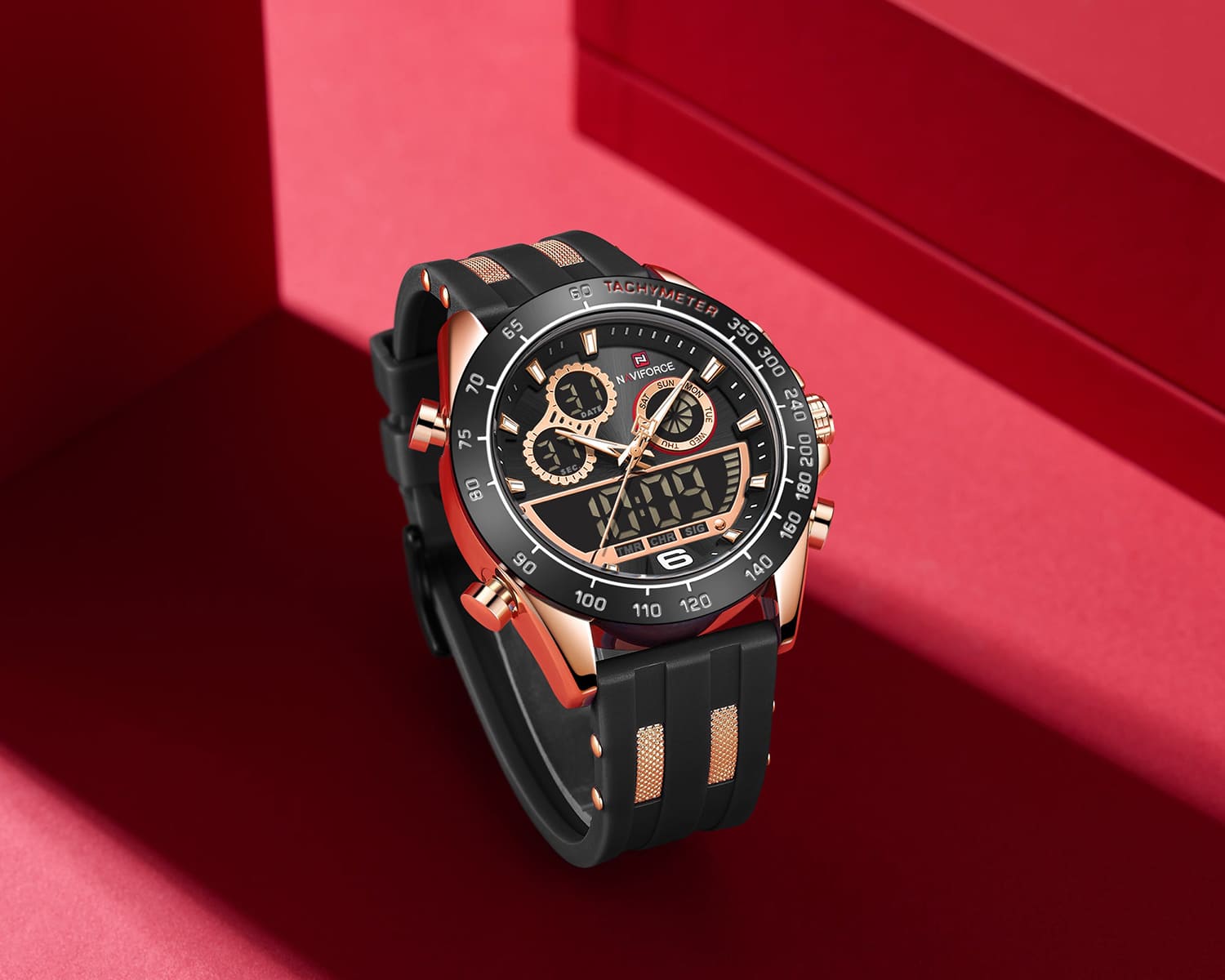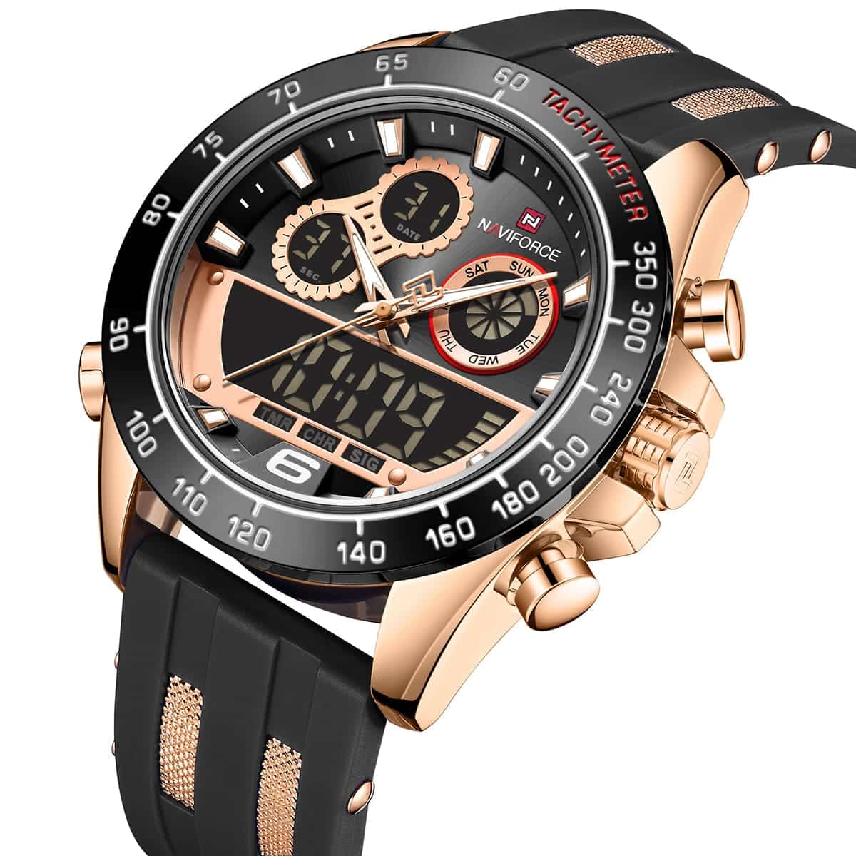 ساعة يد نافي فورس Naviforce NF9188T RG B B رجالي أصلية موديل ( NF9188T ) نظرية و رقمية بلون مينا اسود و استيك سيليكون مطاط بلون اسود احصل عليها غدا خلال 24 ساعة داخل القاهرة و الجيزة و الاسكندرية