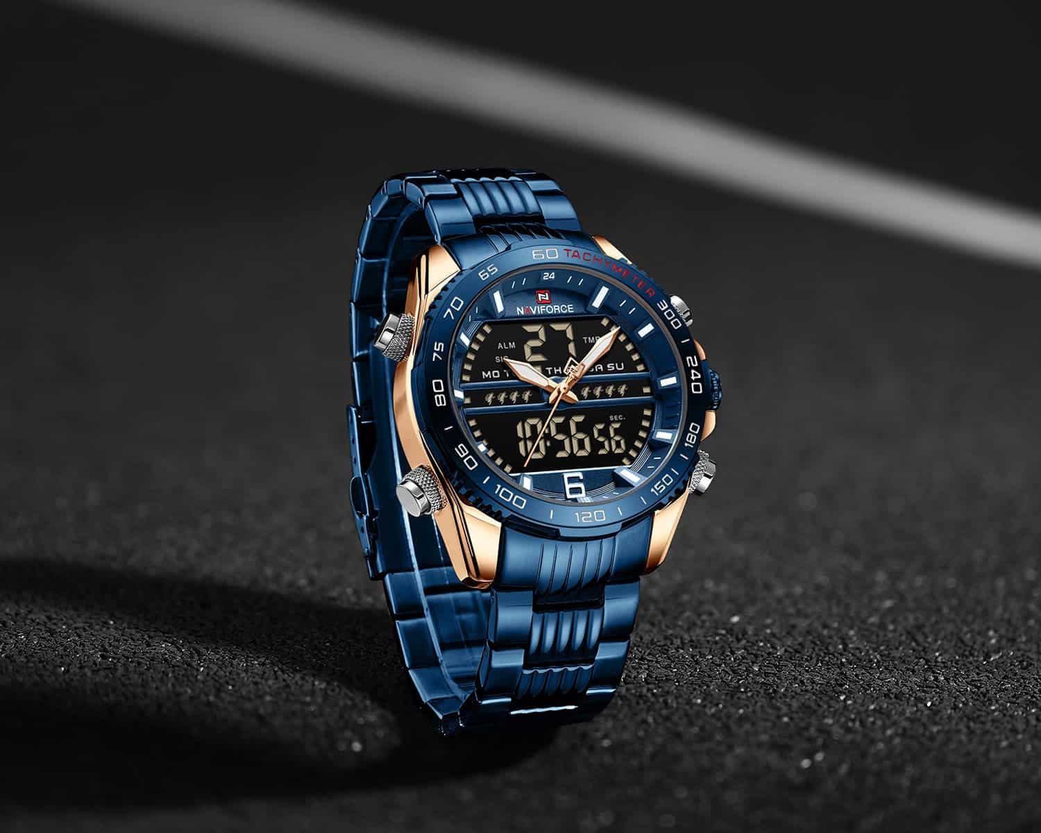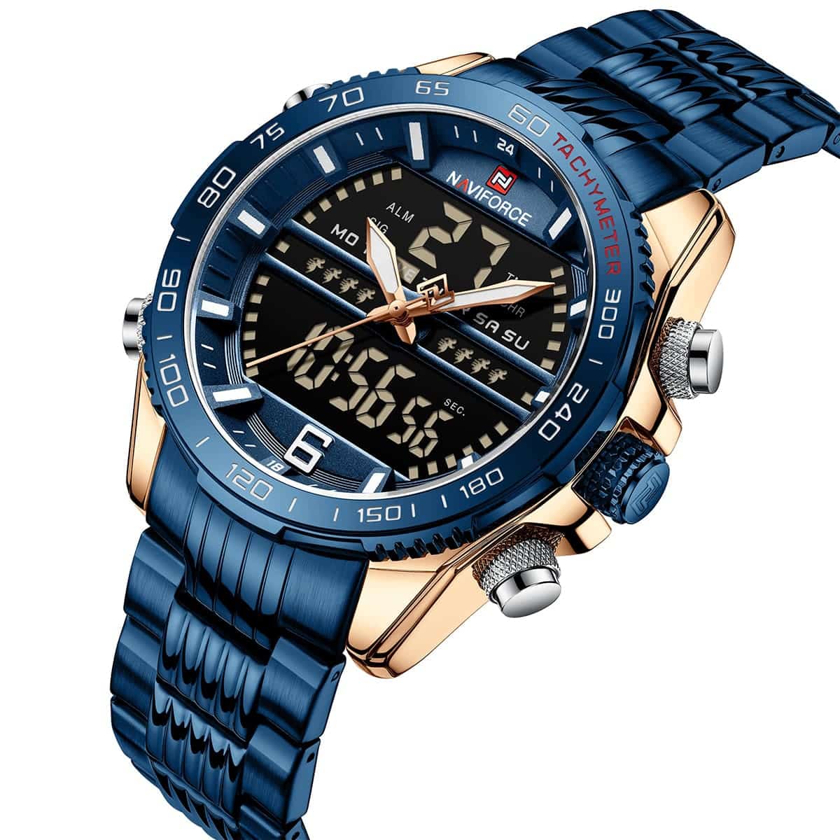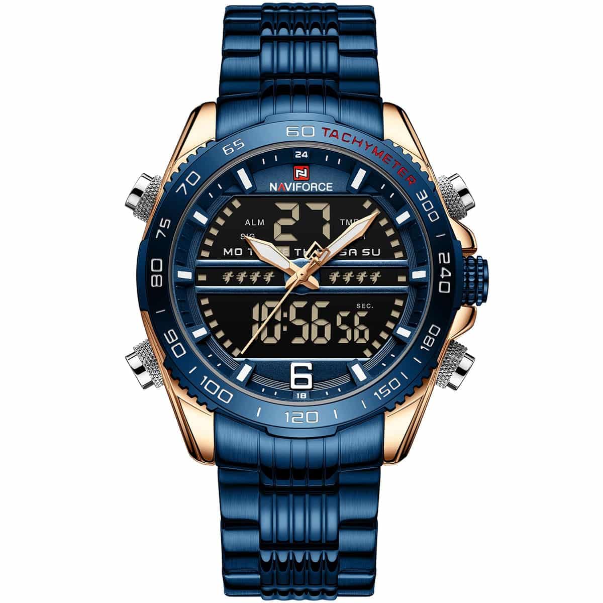 ساعة يد نافي فورس Naviforce NF9195S RG BE BE رجالي أصلية موديل ( NF9195S ) نظرية و رقمية بلون مينا ازرق و استيك معدن بلون ازرق احصل عليها غدا خلال 24 ساعة داخل القاهرة و الجيزة و الاسكندرية