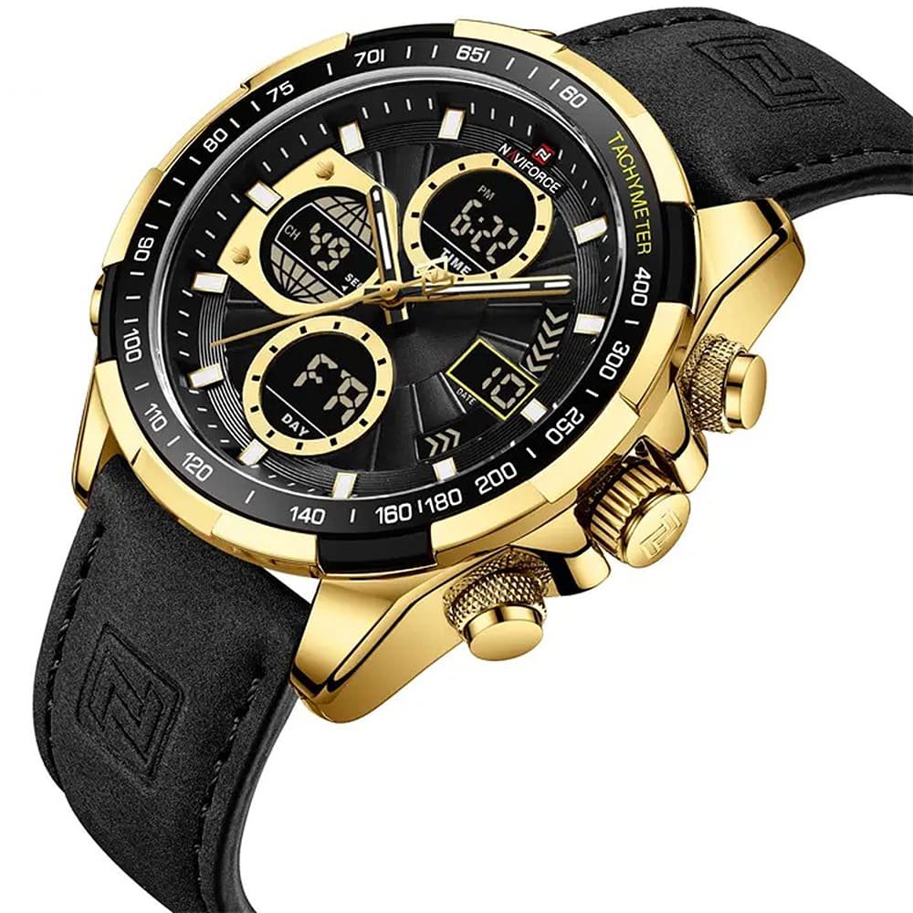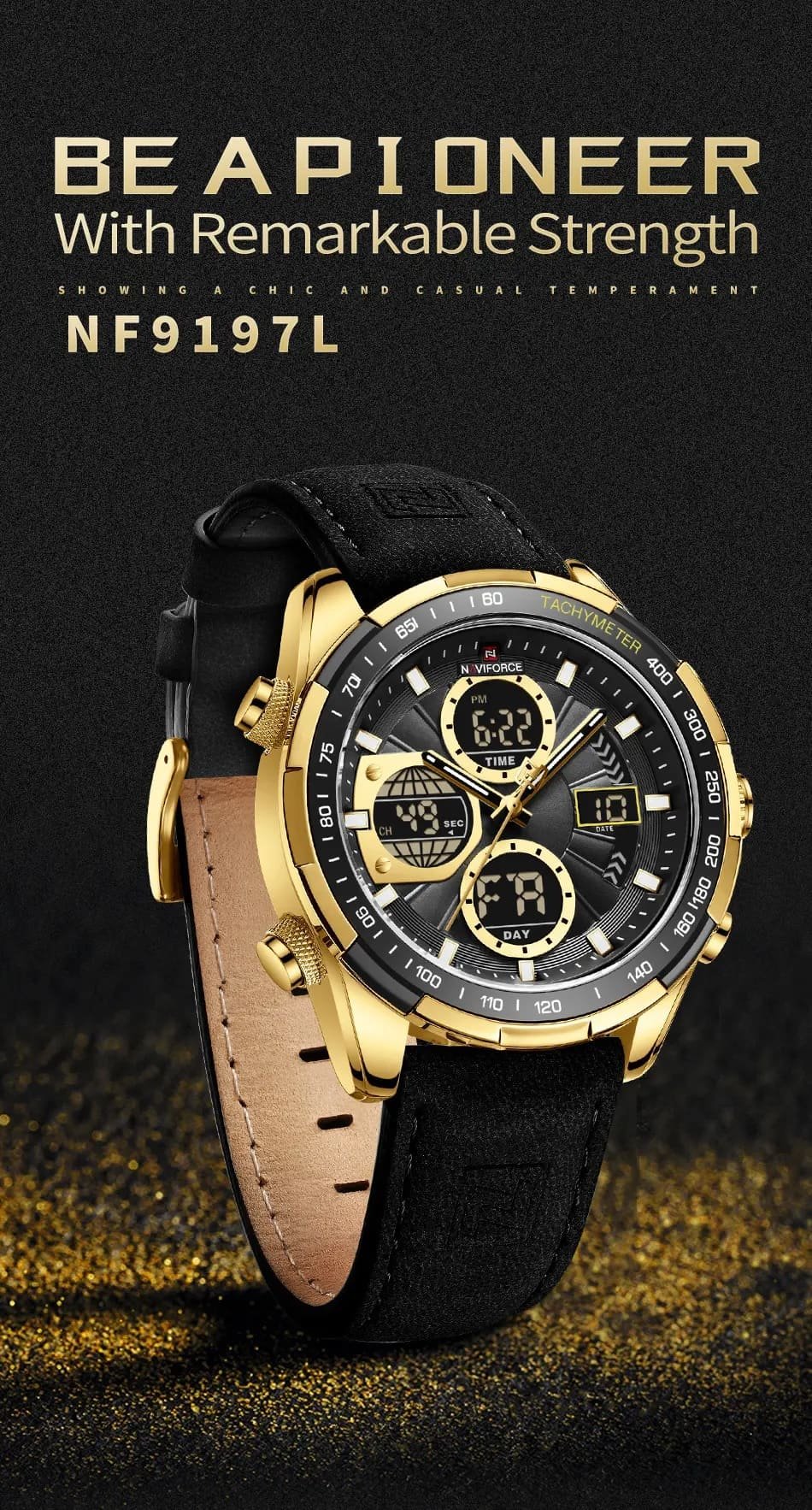 ساعة يد نافي فورس Naviforce NF9197L G B B رجالي أصلية موديل ( NF9197L ) نظريةبلون مينا اسود و استيك جلد بلون اسود احصل عليها غدا خلال 24 ساعة داخل القاهرة و الجيزة و الاسكندرية