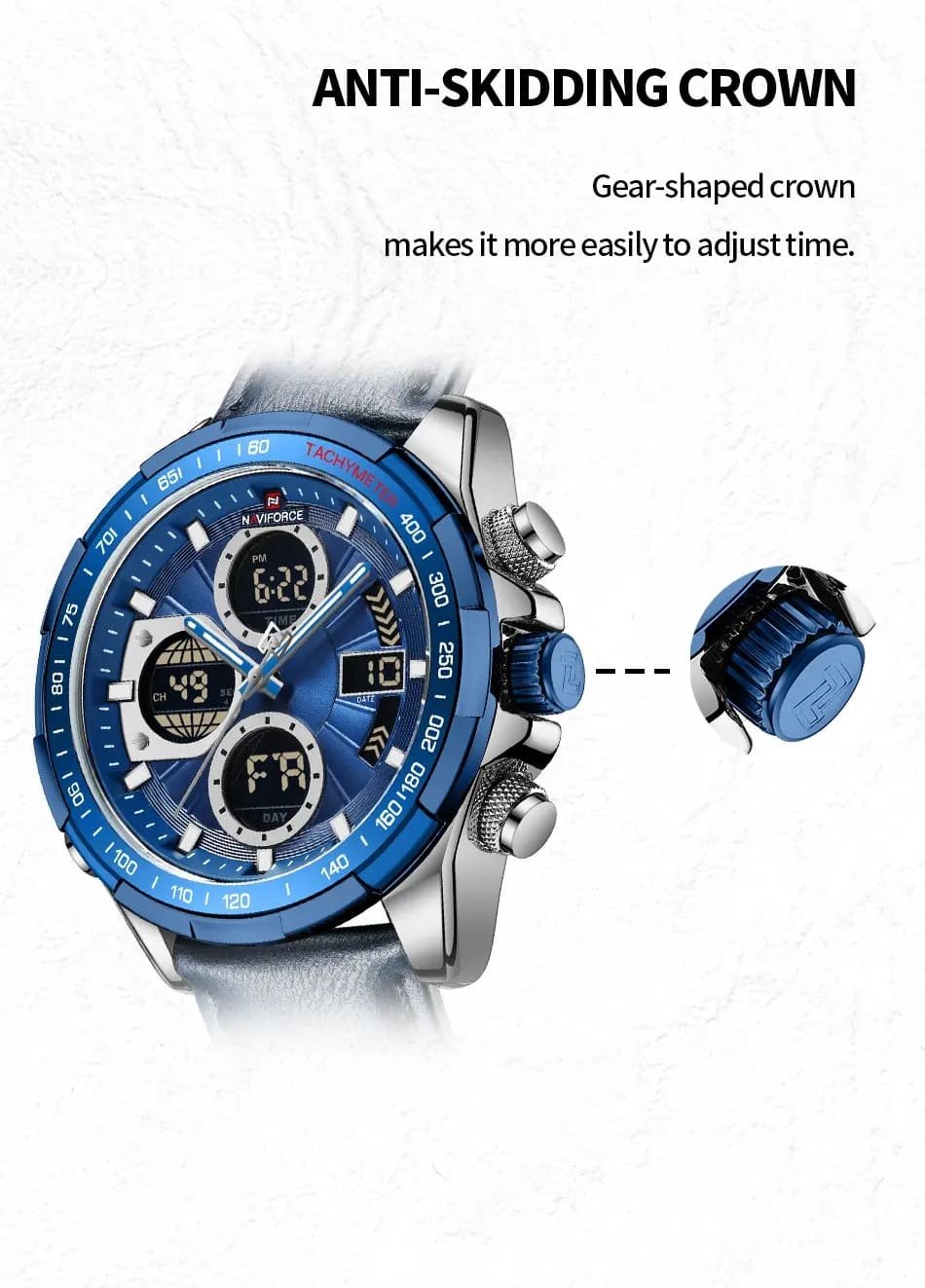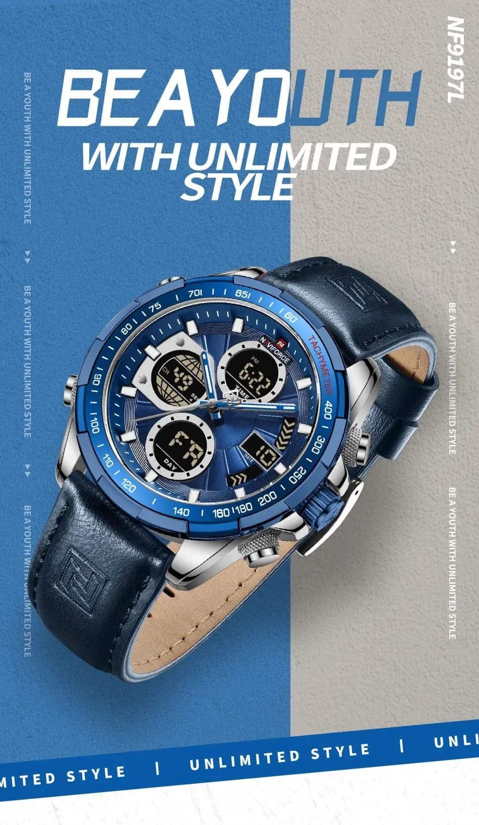 ساعة يد نافي فورس Naviforce NF9197L S BE BE رجالي أصلية موديل ( NF9197L ) نظريةبلون مينا ازرق و استيك جلد بلون ازرق احصل عليها غدا خلال 24 ساعة داخل القاهرة و الجيزة و الاسكندرية