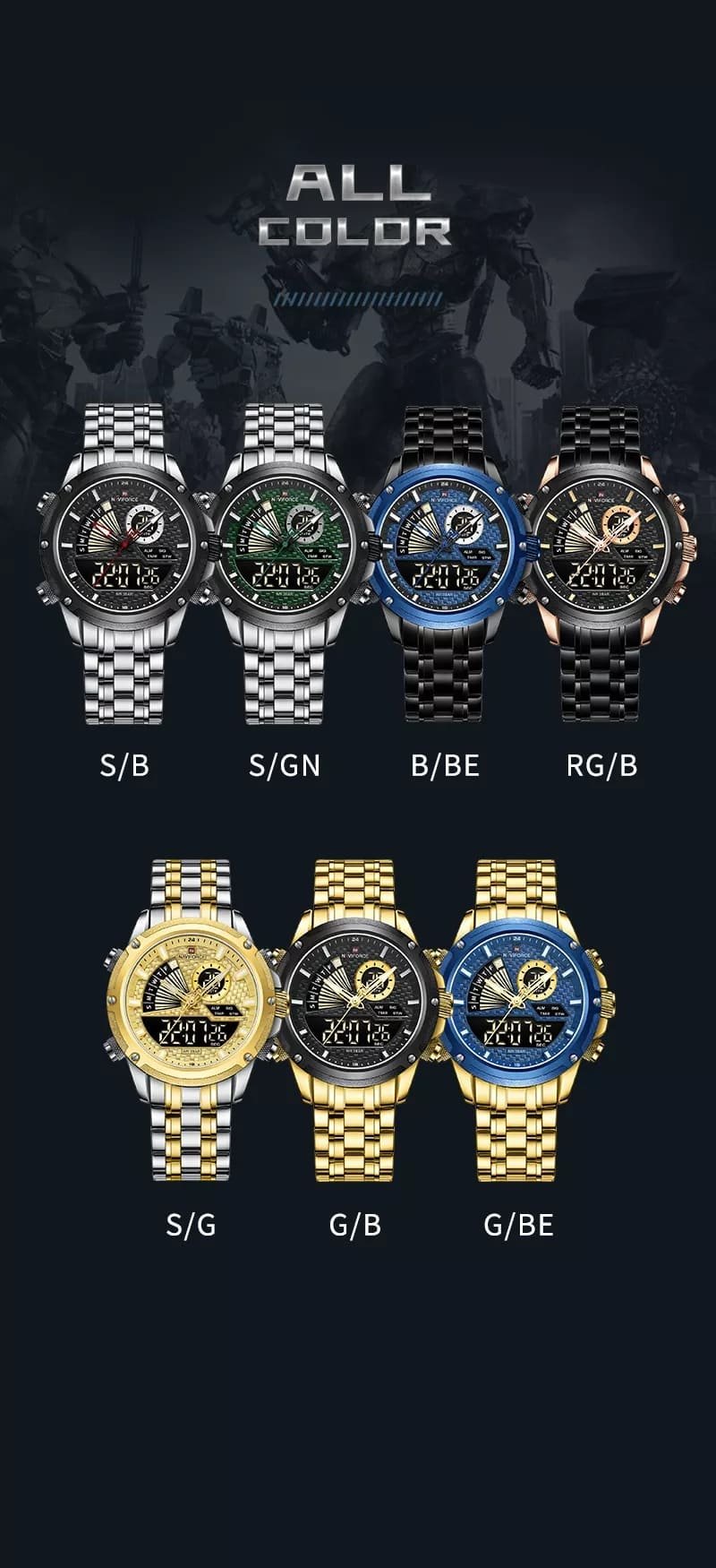 ساعة يد نافي فورس Naviforce NF9205 S G رجالي أصلية موديل ( NF9205 ) نظرية و رقمية بلون مينا ذهبي و استيك معدن بلون فضي و ذهبي احصل عليها غدا خلال 24 ساعة داخل القاهرة و الجيزة و الاسكندرية