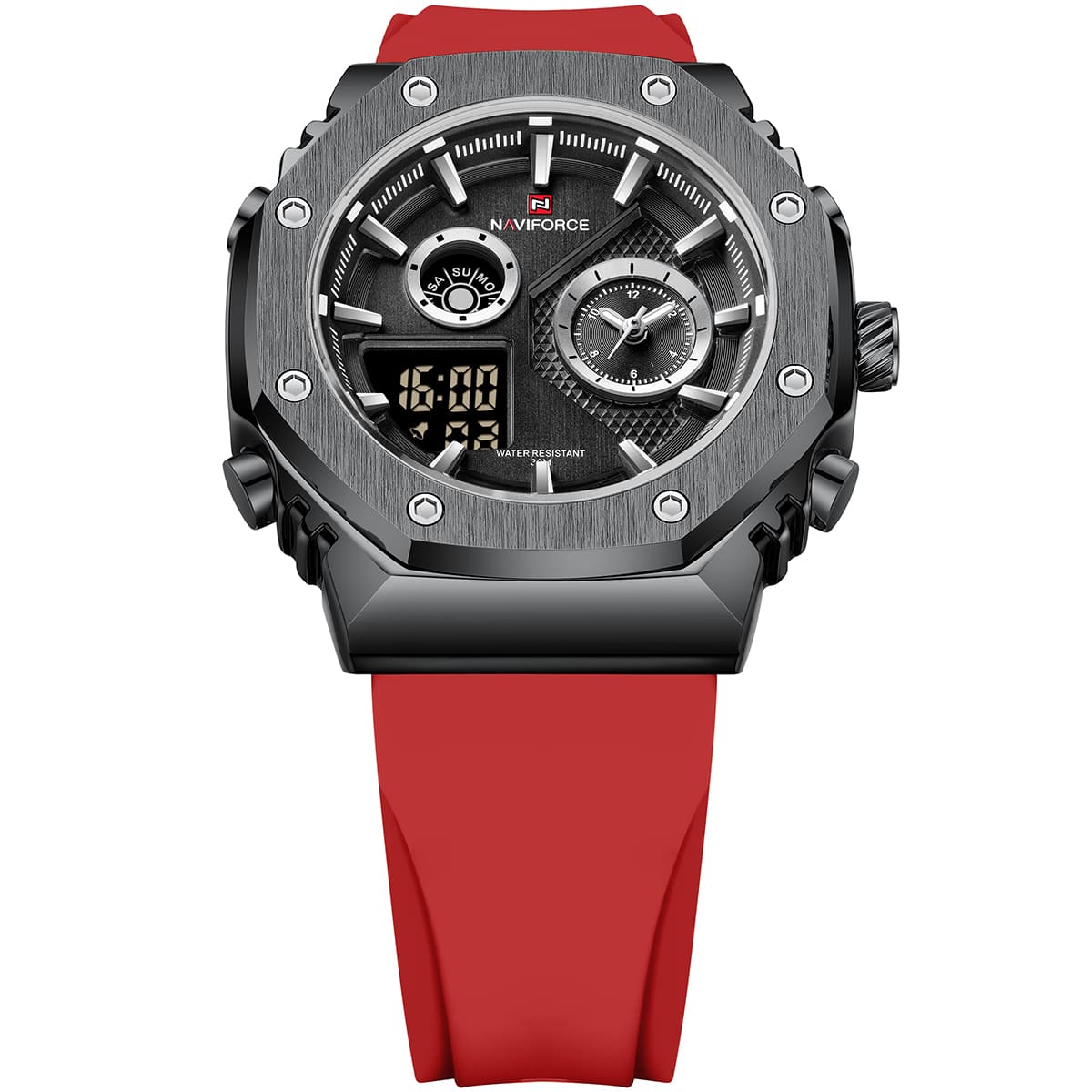 ساعة يد نافي فورس Naviforce NF 9216T B B R رجالي أصلية موديل ( NF9216T ) نظرية و رقميةبلون مينا اسود و استيك سيليكون مطاط بلون احمر احصل عليها غدا خلال 24 ساعة داخل القاهرة و الجيزة و الاسكندرية