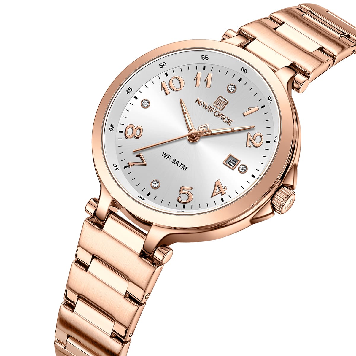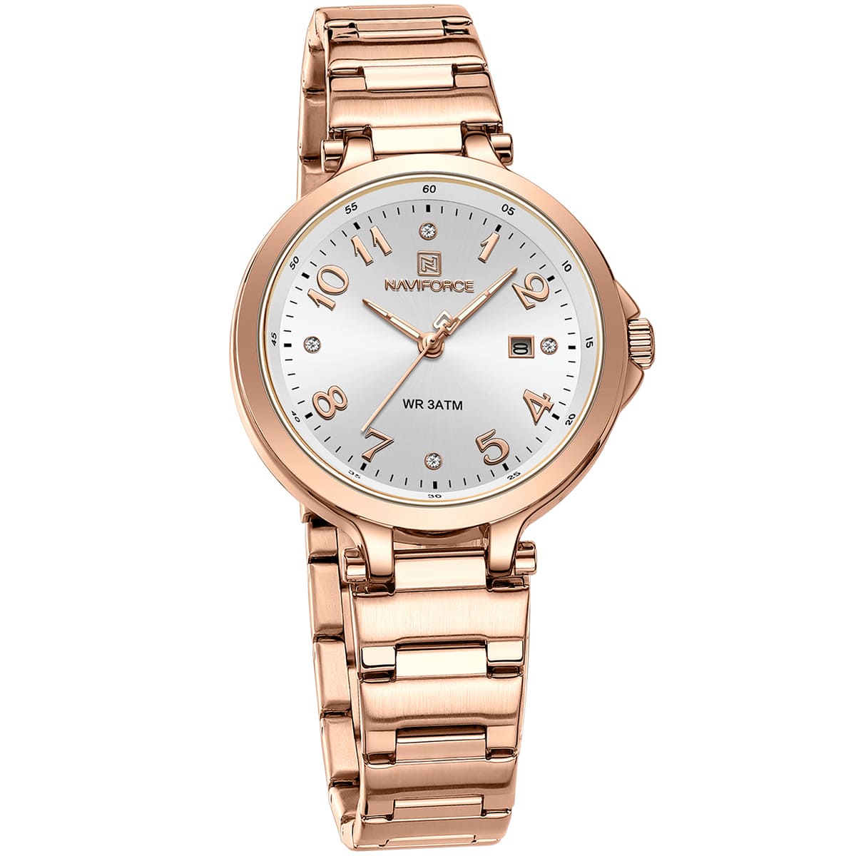 ساعة يد نافي فورس Naviforce NF 5033 RG W حريمي أصلية موديل ( NF5033 ) نظرية WR 3ATM  بلون ابيض و استيك ستانلس ستيل بلون نحاسي احصل عليها الآن من المرشدى للساعات – Elmorshedy Watches