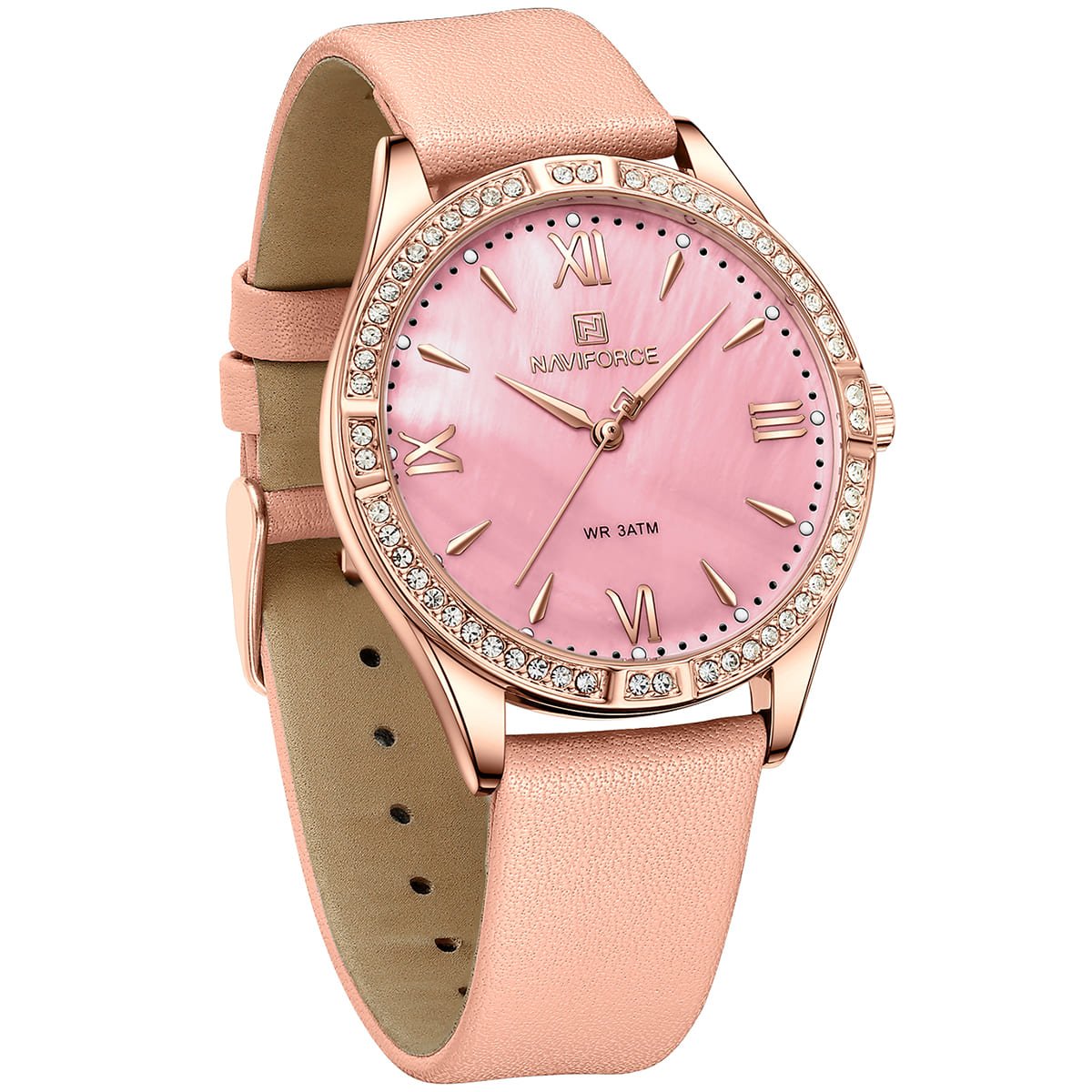 ساعة يد نافي فورس Naviforce NF 5038 RG R حريمي أصلية موديل ( NF5038 ) نظرية WR 3ATM بلون وردي و استيك جلد بلون ورديالساعة مزينة بمينا بألوان متداخلة بشكل رخامي لؤلؤي متجعد احصل عليها الآن من المرشدى للساعات – Elmorshedy Watches