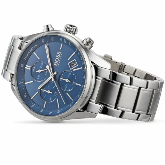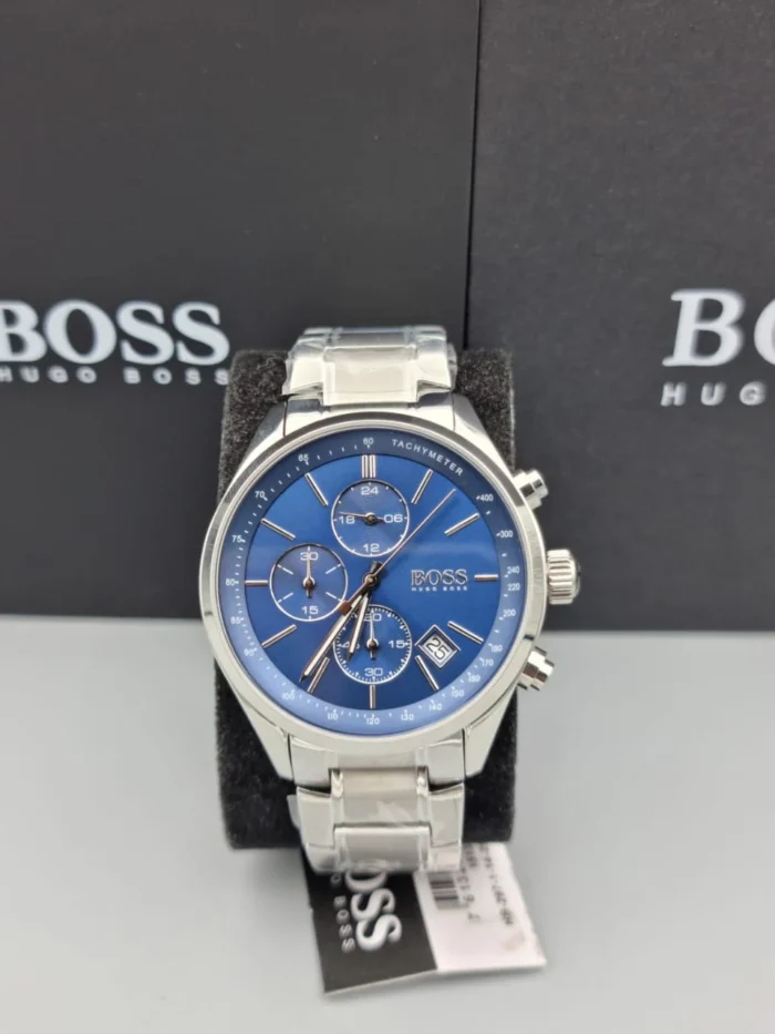 ساعة هوجو بوس للرجال اصلية موديل Grand Prix 1513478 لون ازرق واستيك معدن ستانلس لون فضي