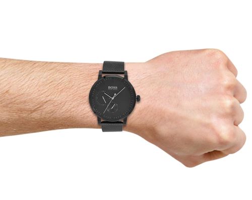 ساعة هوجو بوس للرجال اصلية موديل Oxygen 1513636 لون اسود واستيك معدن ستانلس لون اسود.