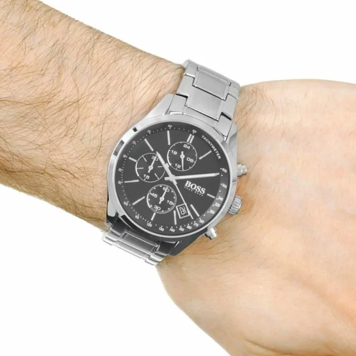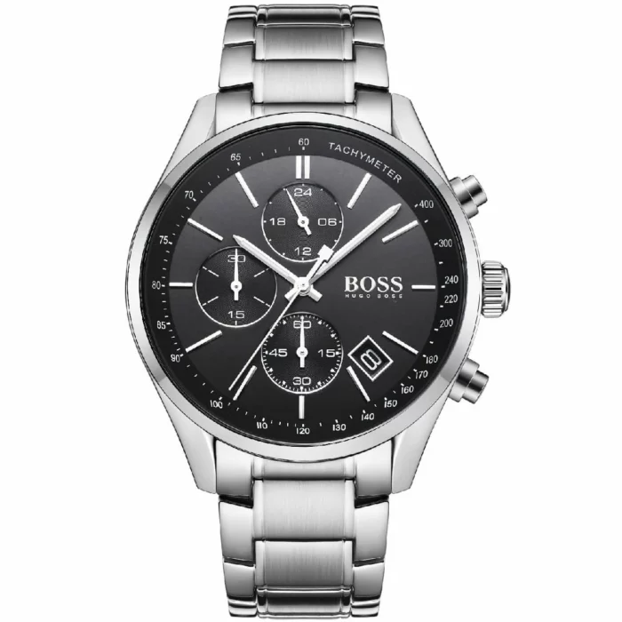 ساعة هوجو بوس للرجال اصلية موديل (جراند بركس) Grand Prix 1513477 لون اسود واستيك معدن ستانلس لون فضى.