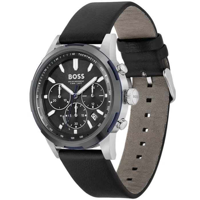 ساعة هوجو بوس Hugo Boss للرجال أصلية موديل 1514031 لون اسود و استيك جلد طبيعي لون اسود.
