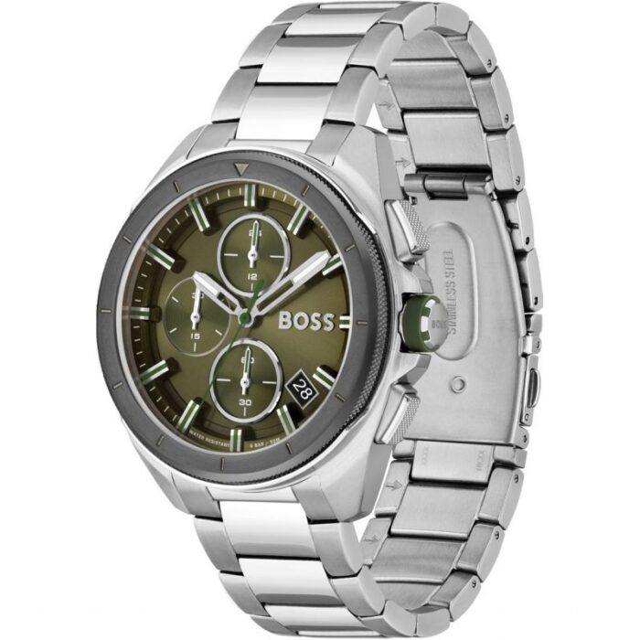 ساعة هوحو بوص اصليه للرجال موديل 1513951 بلون اخضر واوستيك استانلس بلون فضي.