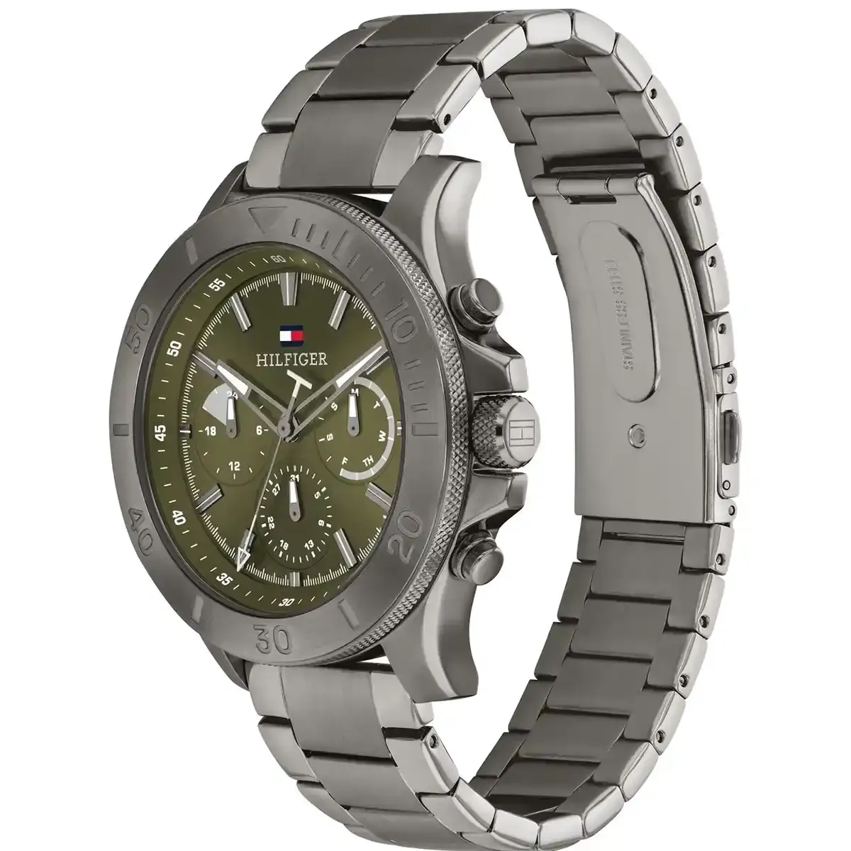 بلون اخضر و استيك ستانلس ستيل بلون رمادي ومينا لون أخضر