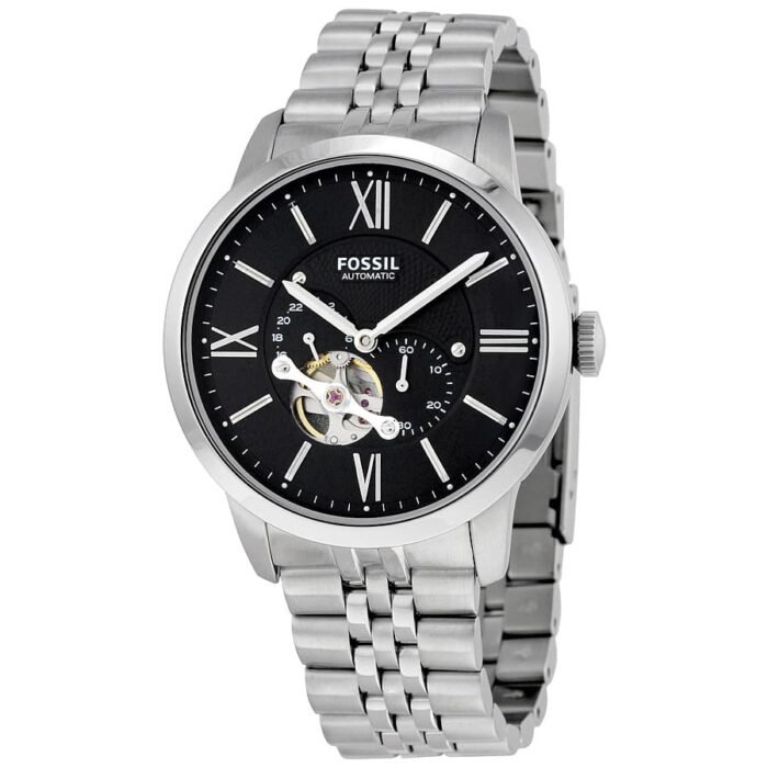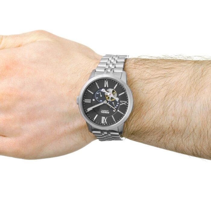ساعة فوسيل للرجال أصلية موديل Townsman ME3107 لون اسود و استيك معدن ستانلس لون فضي.