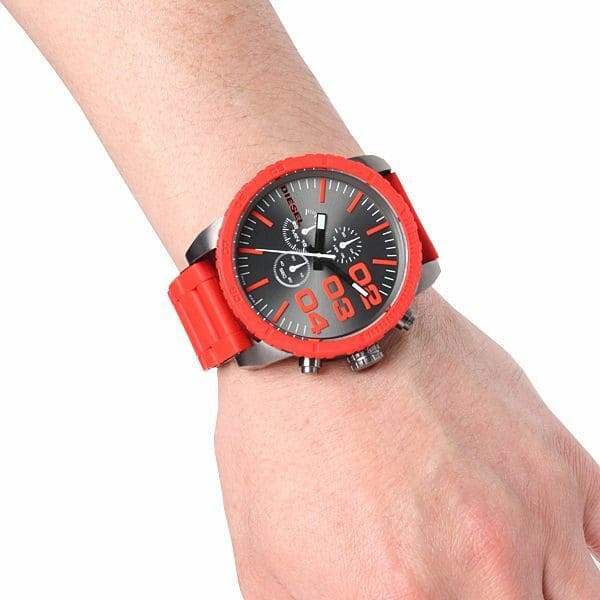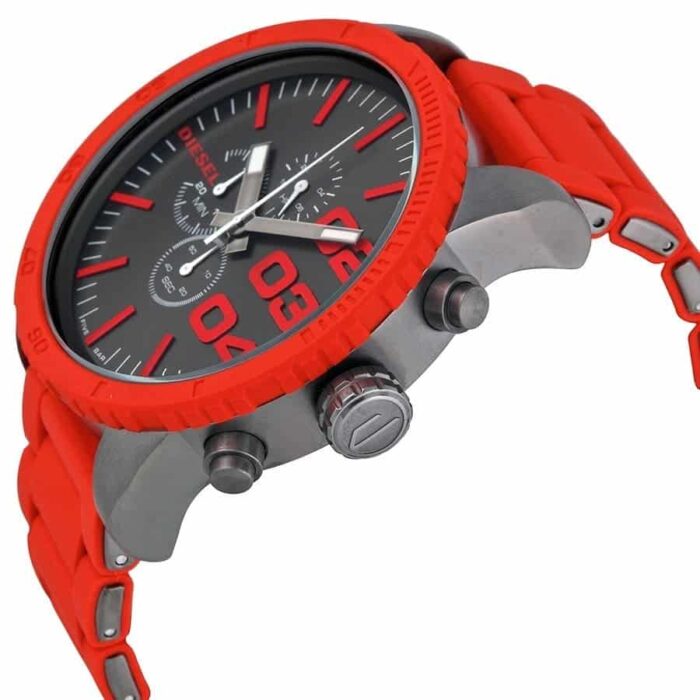 ساعة ديزل Diesel للرجال اصلية موديل Double Down DZ4289 لون رمادي واستيك معدن ستانلس * سيليكون مطاط لون احمر
