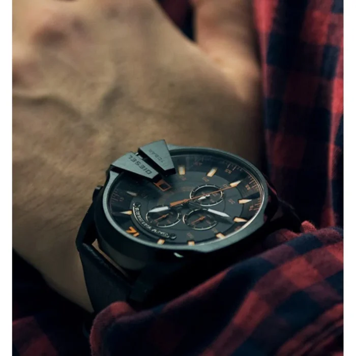 ساعة ديزل Diesel للرجال اصلية موديل Mega Chief DZ4291 لون اسود واستيك جلد طبيعي لون اسود.
