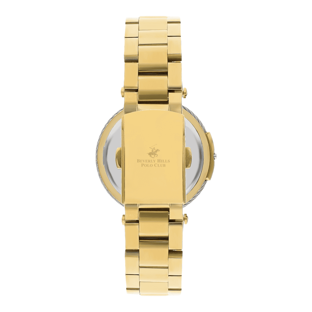 DescriptionInspired by both the luxury and heritage, The Beverly Hills Polo Club Watch with Metal case with Analog display, White Mop Dial 35 mm case diameter, Y120 movement, 5 ATM water resistant Gold Metal bracelet with Standard BuckleRelated
