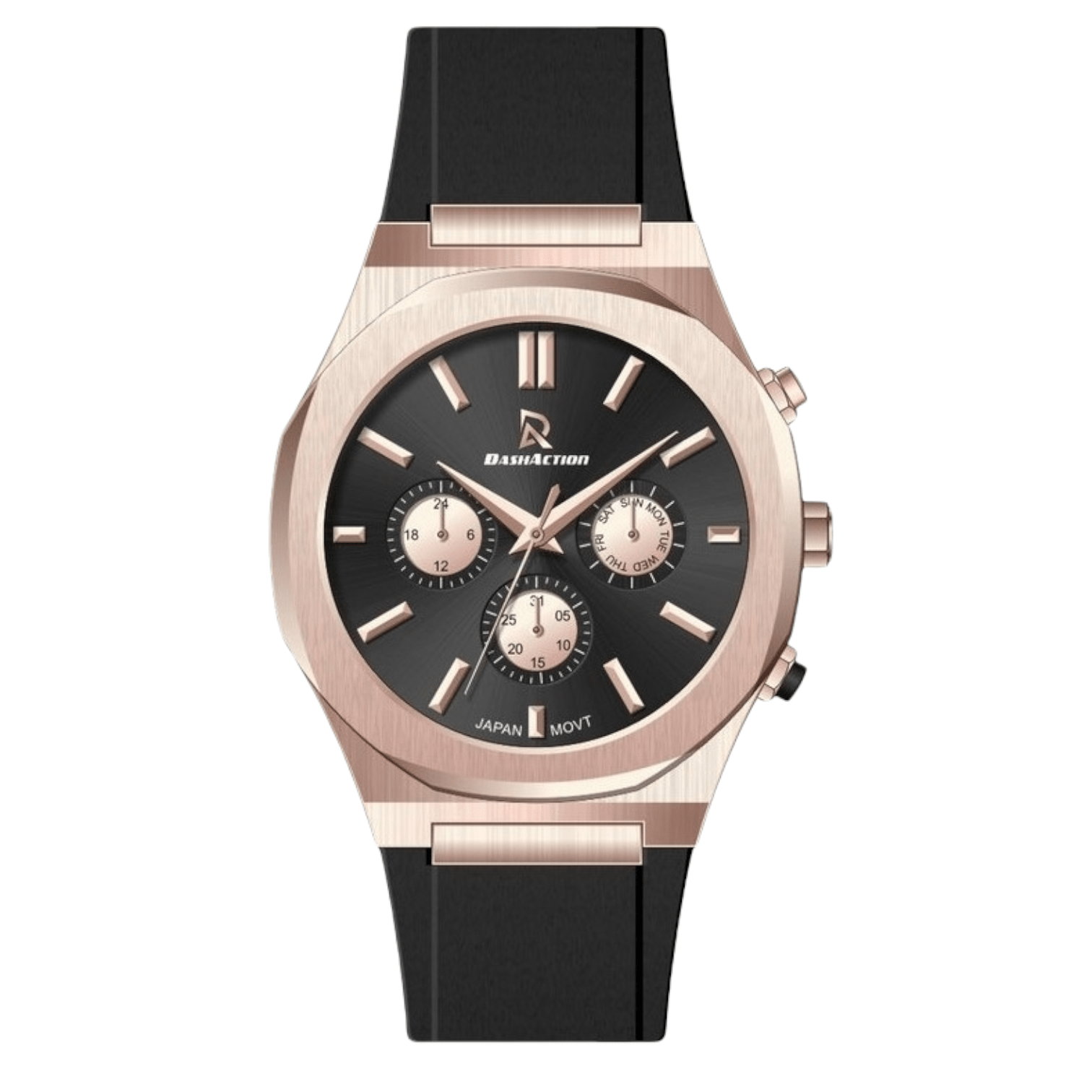 صُممت ساعات داش أكشن (DASH ACTION) خصيصاً لهؤلاء الذين يعيشون حياة مليئة بالمغامرة والحركة، حيث تضع المتانة والأداء الرياضي في مقدمة أولوياتها. تتميز الساعات بمقاومتها العالية للظروف الصعبة وتصاميمها الجريئة التي تبرز القوة والعملية. يقدم لكم المرشدي للساعات هذه المجموعة لتكون شريككم الموثوق في كل تحدٍ رياضي.